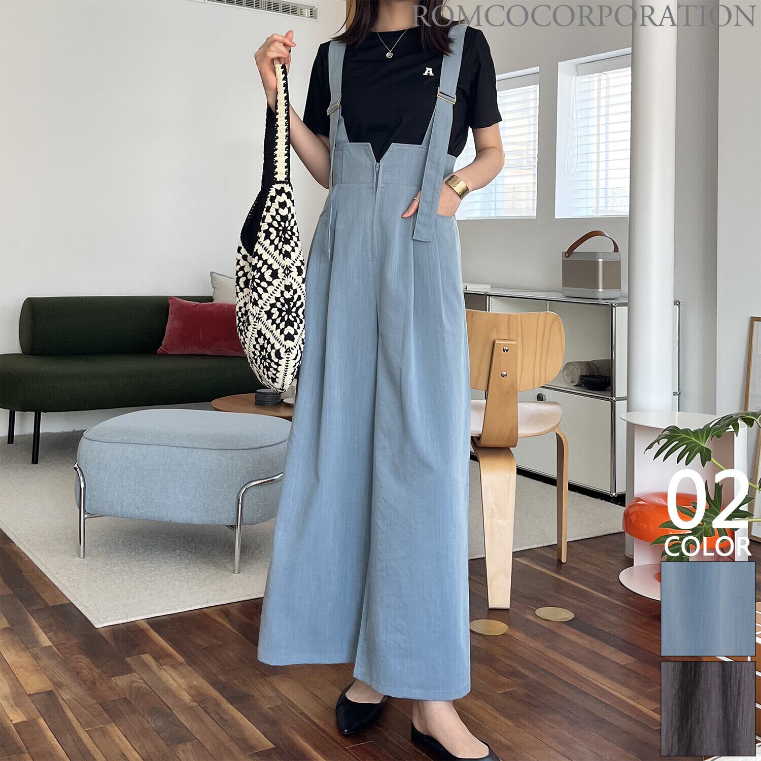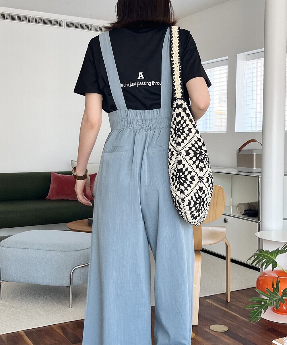 2025/SS/パンツ/サロペット/オールインワン/レディース/ワイドパンツ/ロング丈パンツ/ワンピース/ハイウエスト/無地/春/夏/ストリングデザインハイウエストサロペット
